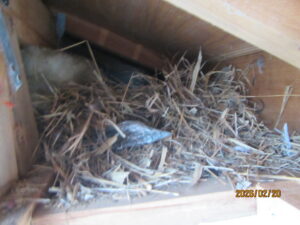 そしてなんと、隙間から入った鳥が巣を作っていました。